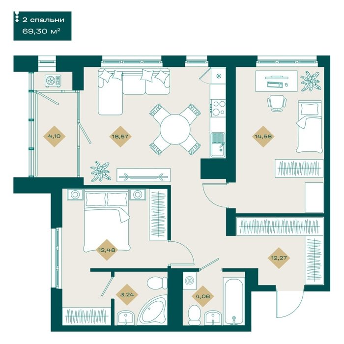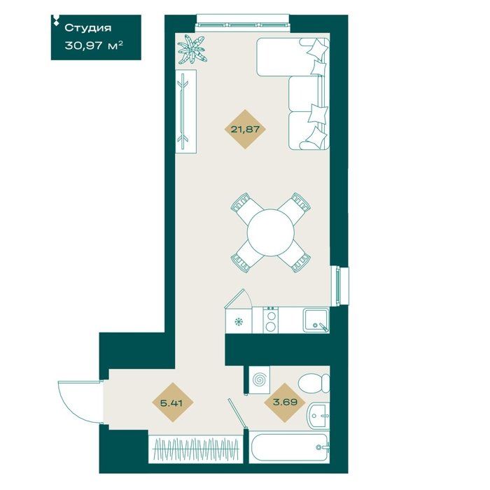 Дизайнерское лобби с ресепшн, авторское кафе и приватные зоны для мероприятий и деловых встреч. Проект предлагает не просто жильё, а продуманное пространство для жизни и работы
