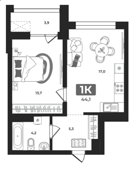 от 44м2