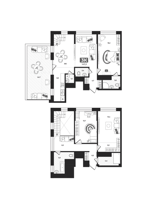 3 -комнатные