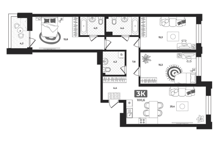 Площадь от 96.6 м2