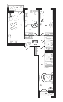 Площадь от 57.6 м2