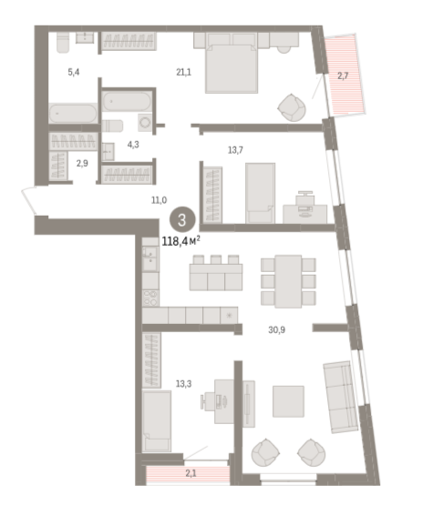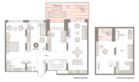 Терраса позволяет проводить время на свежем воздухе, не покидая квартиру.