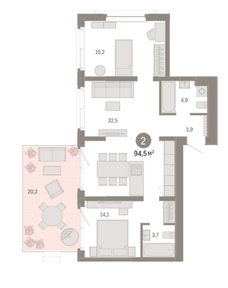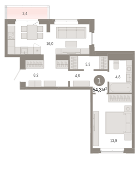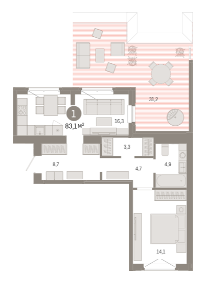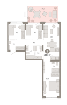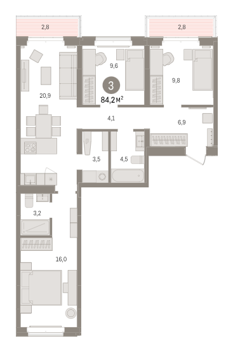 Площадь от 84.2 м2